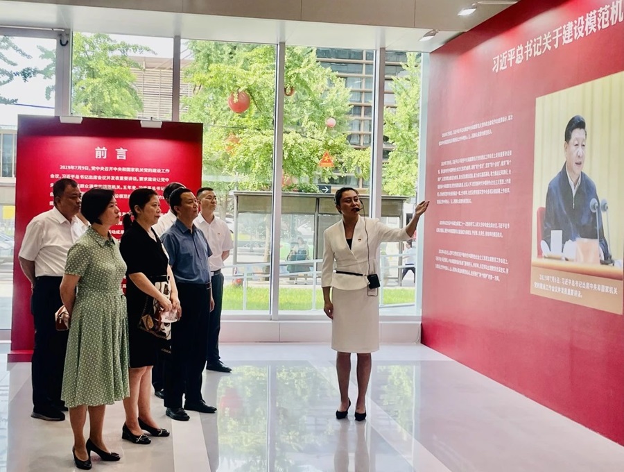 7月11日,陕西社会主义学院党委副书记、副院长周静带领干部职工,赴陕西省文化馆曲江馆区参观学习贯彻习近平总书记“7·9”重要讲话精神暨省直模范机关创建活动成果展。副院长袁炜伟、朱丽参加活动。