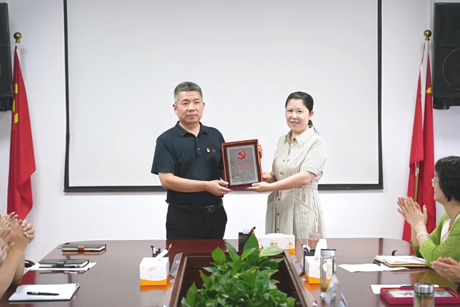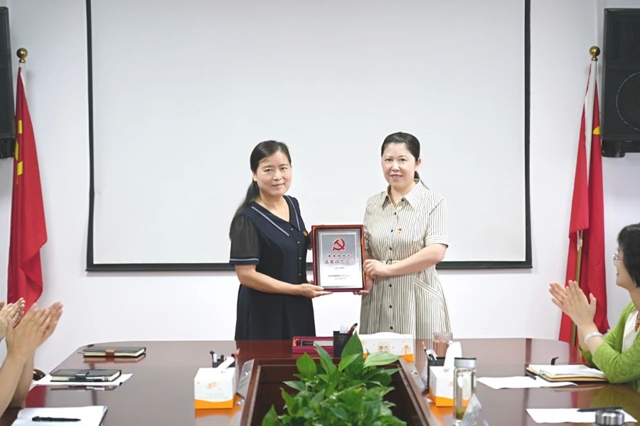 仪式宣读了省委直属机关工委《关于命名2023年度省直机关“五星级党支部”的通报》,并为学院命名为省直机关“五星级党支部”的组织人事处党支部、教务处党支部进行授牌表彰。