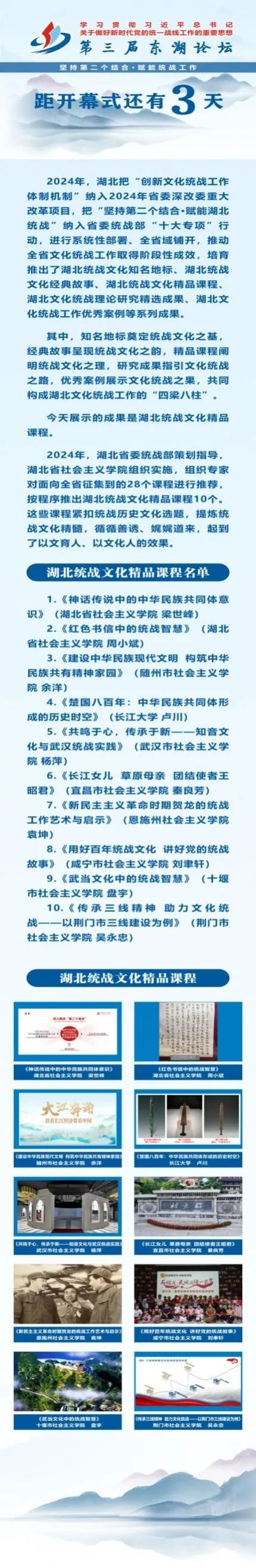 ½üÈÕ£¬ºþ±±Í³Õ½ÎÄ»¯¾«Æ·¿Î³ÌÃûµ¥·¢²¼¡£2024Äê5Ô£¬ºþ±±Ê¡Î¯Í³Õ½²¿¡¢Ê¡Éç»áÖ÷ÒåѧԺÔÚȫʡÉçԺϵͳ¿ªÕ¹Í³Õ½ÎÄ»¯¾«Æ·¿Î³ÌÁªÆÀÁªÕ¹¡£À´×ÔÖÐÑëÉçÔº¡¢Î人´óѧ¡¢Î人Àí¹¤´óѧµÄר¼Ò£¬´Óºþ±±Ê¡ÉçÔººÍ¸÷ÊС¢ÖÝÉçÔº²ÎÕ¹µÄ28ÃſγÌÖÐÆÀÑ¡³ö10Ãźþ±±Í³Õ½ÎÄ»¯¾«Æ·¿Î³Ì£¬×÷Ϊѧϰ¹á³¹Ï°½üƽ×ÜÊé¼Ç¹ØÓÚ×öºÃÐÂʱ´úµ³µÄͳһսÏß¹¤×÷µÄÖØÒªË¼ÏëÒÔ¼°µÚÈý½ì¶«ºþÂÛ̳µÄ³É¹û¼¯Öз¢²¼¡£ÏÂÒ»²½£¬ºþ±±Ê¡ÉçÔº½«Ç¿»¯½á¹ûÔËÓã¬×¢Öؿγ̽¨É裬ÉÀíÂÛÑо¿£¬Íƶ¯ÖлªÓÅÐ㴫ͳÎÄ»¯ÓлúÈÚÈëÐÂʱ´úͳս¹¤×÷¡£