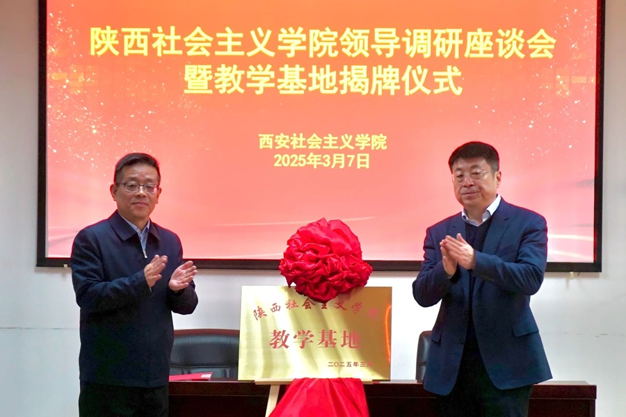 座谈会后,崔歆和贠笑冬共同为陕西社会主义学院教学基地揭牌,并签订战略合作协议。陕西社会主义学院党委委员、副院长袁炜伟及相关处室负责人,西安市委统战部及市社院领导同志参加调研。