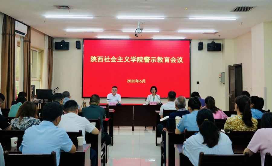 6月20日,陕西社会主义学院召开警示教育会议,深入学习习近平总书记关于加强党的作风建设的重要论述,集体观看警示教育片《铁规矩 硬杠杠》。省委统战部副部长,院党委书记、常务副院长崔歆以“深悟中央八项规定精神 筑牢作风建设根基”为题讲专题党课。院党委委员、副院长朱丽主持会议。