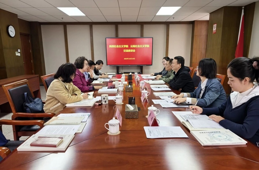 10月9日,陕西社会主义学院党委委员、副院长、学报主编袁炜伟一行5人到云南省社会主义学院调研并座谈交流。云南社院党组成员、副院长郑义,秘书长杨松禄及科研处、学报编辑部相关人员参加座谈会。
