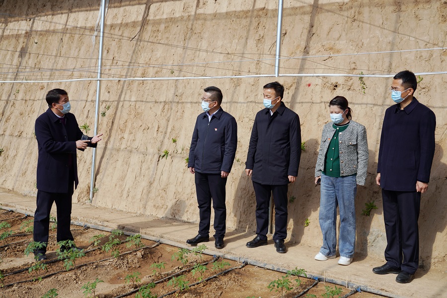 随后,崔歆一行实地察看了正在建设的18个蔬菜大棚,南塬生产道路施工情况,并入户走访了脱贫群众。